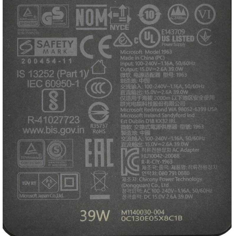 Keep your Surface ready for action with the Microsoft 39W Professional AC Adapter (Model 1963). Specifically tailored for the Surface Laptop Go and the latest Surface Pro generations, this 15V 2.6A charger balances high-efficiency energy delivery with an incredibly compact form factor. It is the perfect primary charger for your home office or a lightweight spare for your travel bag.
