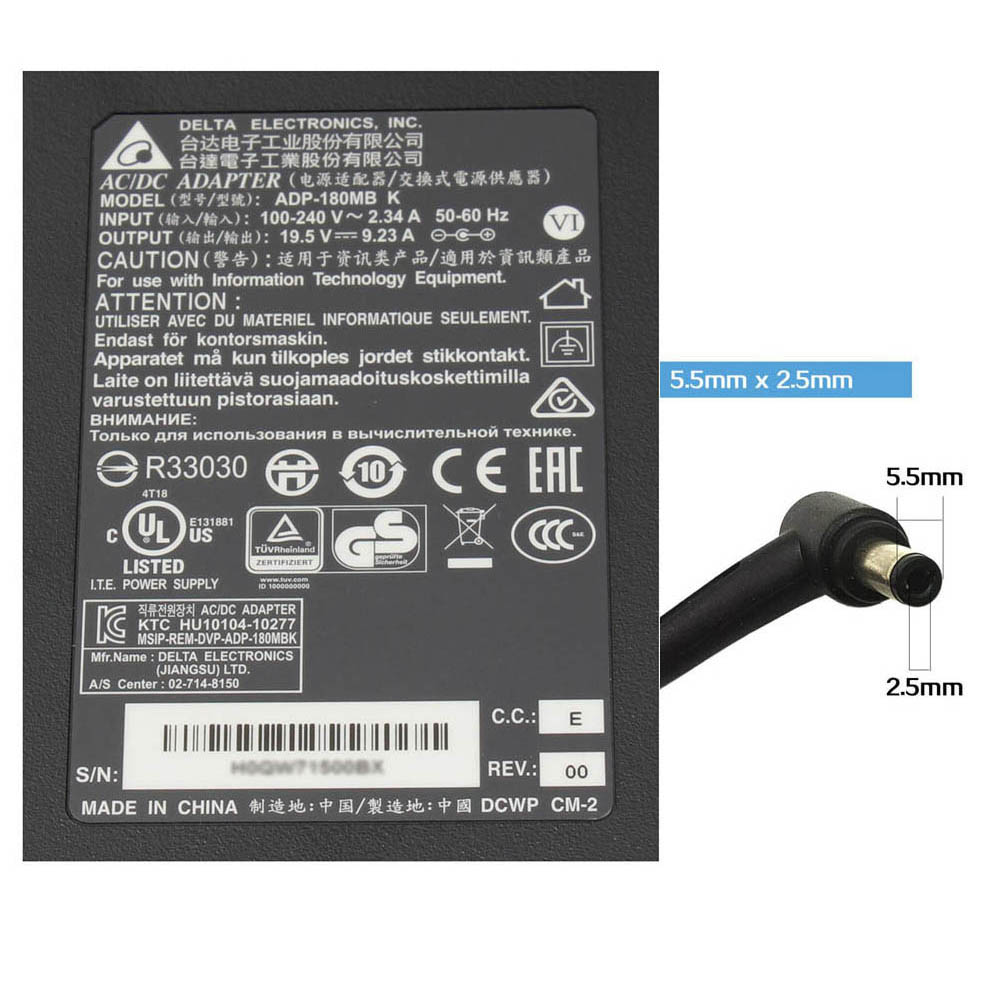 | Output Rating | 19.5V 9.23A (180W Max) |