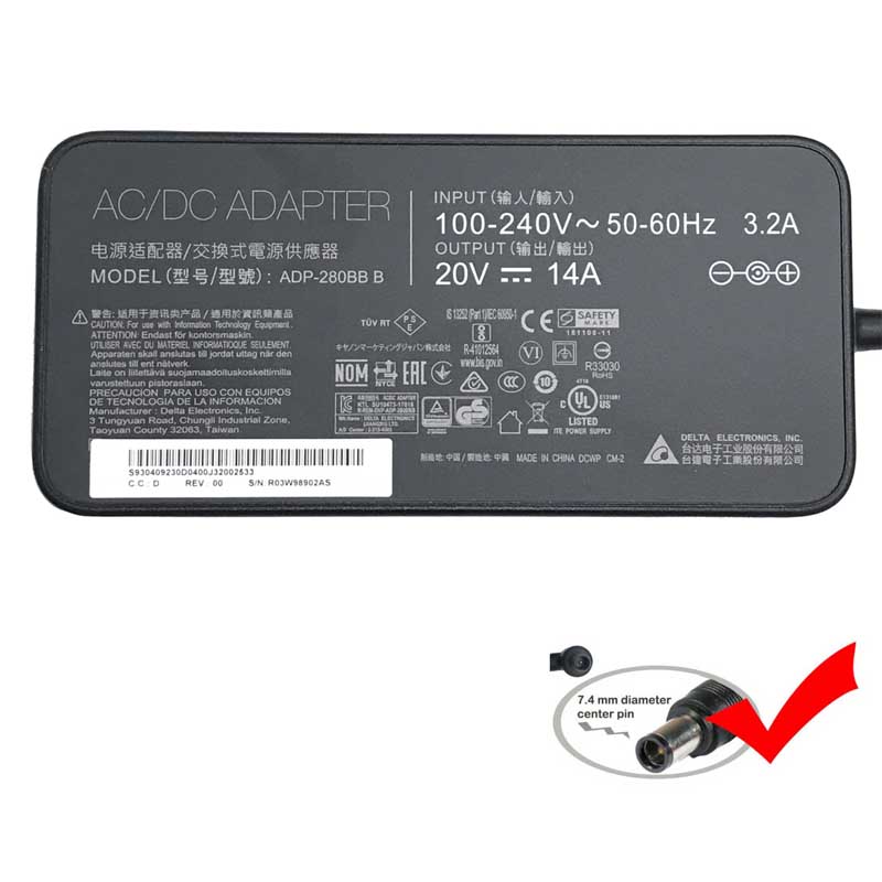 20V 14A 280W MSI Charger Adapter with 7.4mm 5.0mm Connector