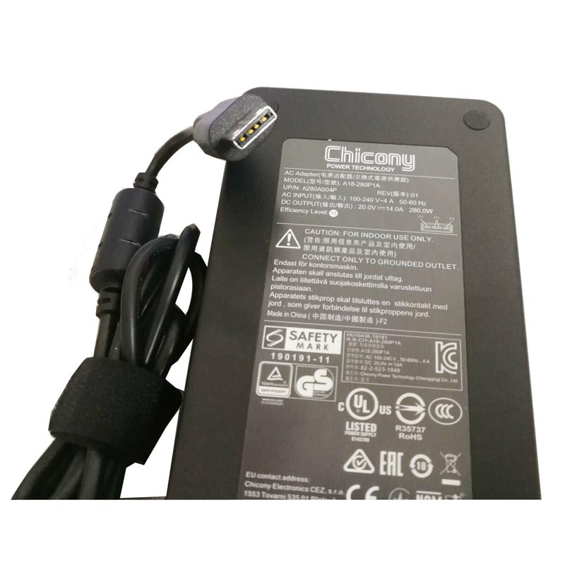 20V 14A 280W MSI Charger Adapter with Rectangle Connector