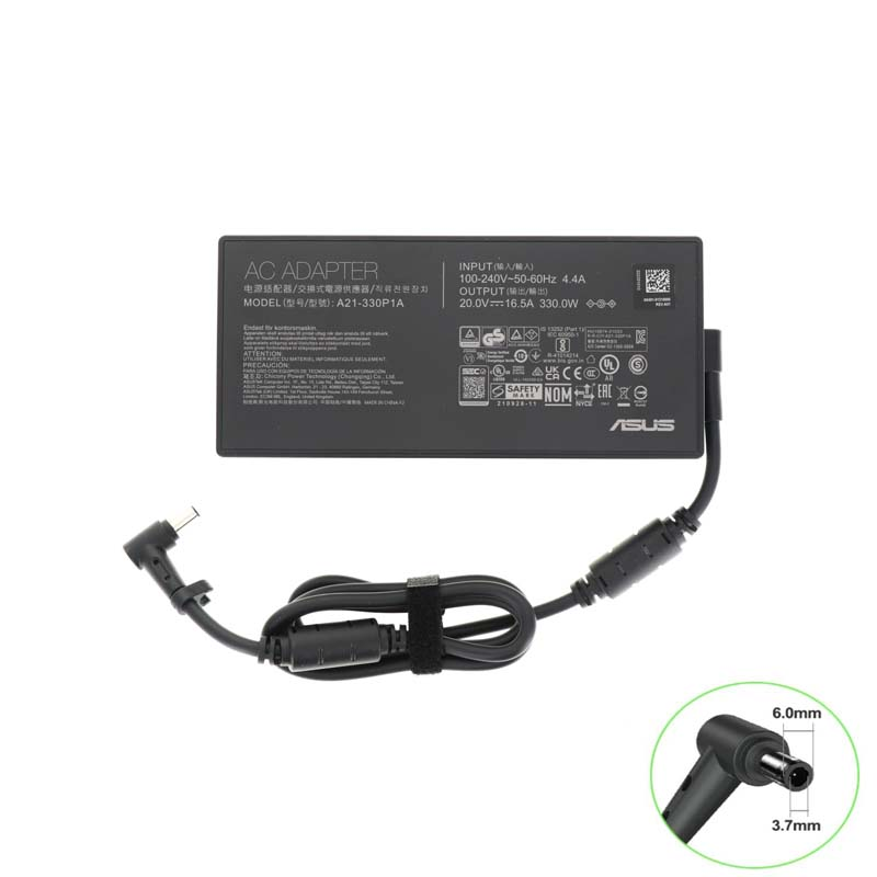 Asus 330W charger 6.0mm 3.7mm pin, ROG Strix SCAR 18 G834JY power supply, Zephyrus Duo 16 GX650PY adapter, A22-330P1A power cord, 20V 16.5A gaming laptop charger, ADP-330GB B replacement.